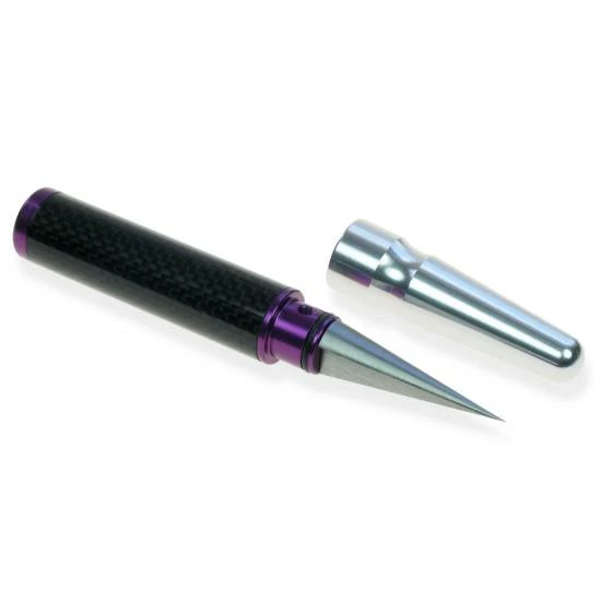 The handle is made up from a lightweight but very strong carbon fibre tube and hard-anodized aluminium. The reamer tip is very sharp and will pierce and cut holes in plastics and other such materials with very little effort so be careful when using this tool.